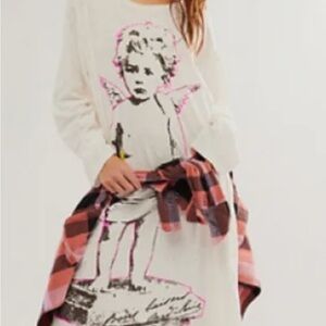 Magnolia Pearl adorable St Valentines oversized distressed and faded tee shirt dress with tags. New boyfriend cut. Cotton. Perfect to layer over longer tees, wear over jeans, leggings, tulle. I knot one side of the hem up for an asymmetrical look and wear with jeans and boots. Great on hotter days with sandals. Notice photos of distressing. No stains. Sizing is one size but because it is oversized it appears to run from Sz 6/8 to 22/24. Pet free, smoke free home.