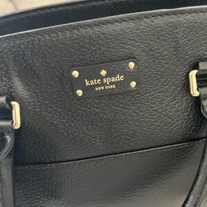 Chic black leather satchel by Kate Spade. Gold hardware adds elegance. Ideal for versatile use like new not call out in good condition.