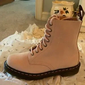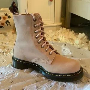 Chic Powder pink nubuck boots with sturdy lace-up design. Perfect for versatile styling. BNIB