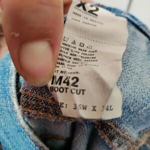 X2 Denim Laboratory #M42 boot cut destructed & distressed jeans mens size 36/34