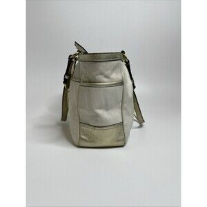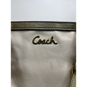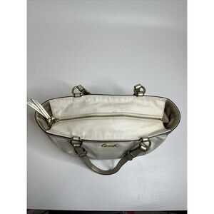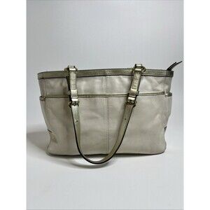 Coach Gallery tote shoulder bag in cream leather with gold-tone accents. Spacious interior with multiple compartments. Elegant and versatile design perfect for everyday use or special occasions.