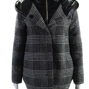 Herno Women’s Button Zip Front Glen Plaid Down Quilted Jacket Black White IT 46