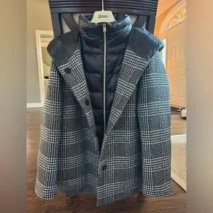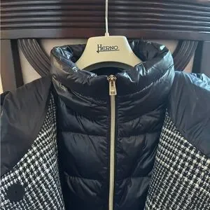 Brand new, perfect condition. Herno Women’s Button Zip Front Glen Plaid Down Quilted Jacket Black White IT 46 (US size 10)
