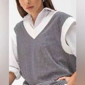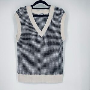 Zara Black and White Houndstooth Oversized Knit Vest S