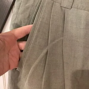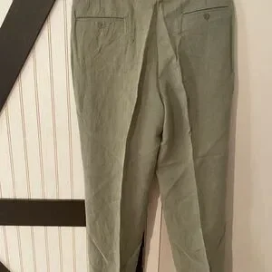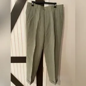 Saks Fifth Avenue Men's 36x30 Gray Linen Blend Pants Green/light Olive pleated