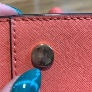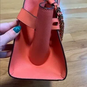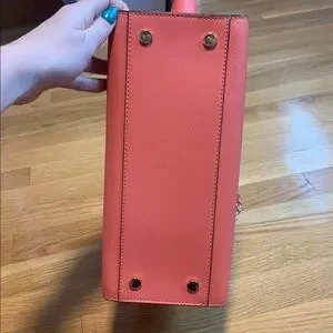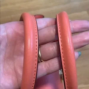 Gorgeous grapefruit pink like color. Used minimally with very minor flaws. Will come with a longer strap, however I do not have the dust bag. I will wrap with bubble wrap/tissue paper with care.