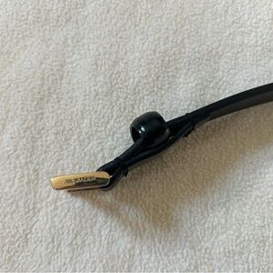 Chic black patent leather belt by Jil Sander. Features a sleek design with a silver buckle. Perfect for elevating any outfit. Width 3/4 inch. Slight marks as pictured.