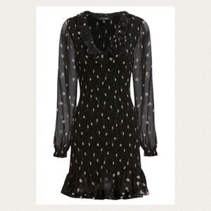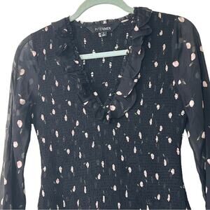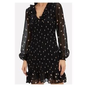 Intermix Elara 100% Silk Black Floral Smocked Mini Dress Size 2