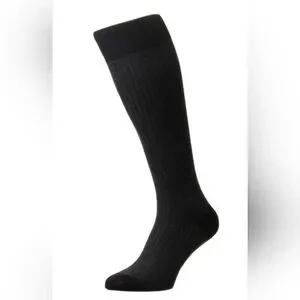 Experience the elegance of Pantherella's black dress socks. Fabian long herringbone men's dress socks are smooth and breathable, for everyday comfort. The herringbone design enhances both workwear and everyday casual looks, for cotton over-the-calf socks that add style to any aesthetic.