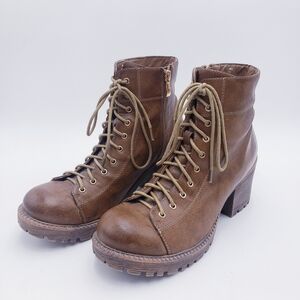 Vintage 90s Y2K Platform Lace Up Chunky Heel Boots Brown Faux Leather Women's Size 10