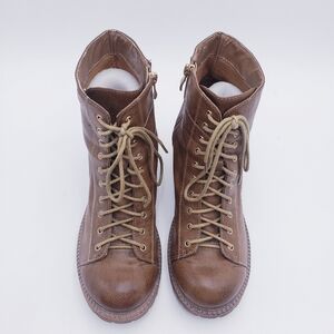 Vintage 90s Y2K Platform Lace Up Boots Chunky Brown Faux Leather Women's Size 10