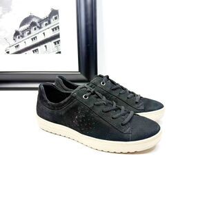 ECCO sneakers, Soft 7 sneakers, black leather sneakers, size 7, EU 38, casual shoes, comfortable sneakers, travel shoes, everyday footwear, lace-up sneakers, lightweight sneakers.