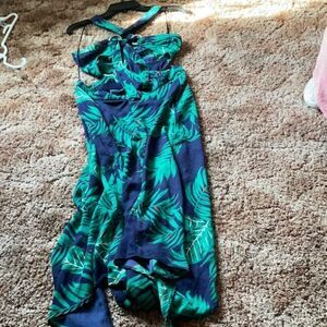Take 50% OFF- Fashion Nova Halter Neck Palm Prints Dress, Size-L