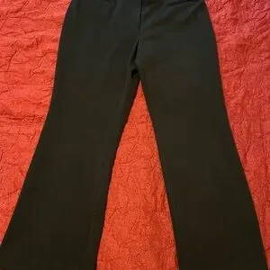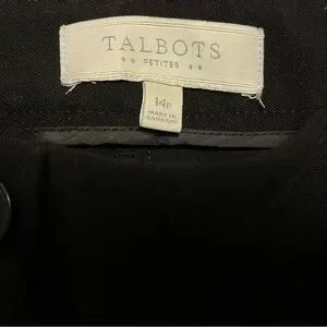 Excellent condition very gently worn black Talbots dress pants. 14 Petite Curvy. Machine wash cold. 68%Polyester, 28% Rayon, 4% Spandex. They fit great and are stretchy enough to move around in, while still retaining that formal business attire look. I only wore them a few times before I got a job where I have to wear a uniform, so I no longer need these. They zip up and have two buttons in front (one black on the outside and one clear on the inside). Two front pockets. Very well made and should last a long time. Although they’re not labeled high waist, I absolutely can’t stand low riding pants and I am happy with these. Not too high or too low.