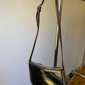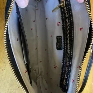 Gorgeous Frances Valentine sling bag, perfect condition. Black leather exterior with gold clasps zips and hardwear. Adjustable straps for cross body satchel or shoulder bag functions. Multiple pockets with zippers within for storage. Comes with authentication card and protective bag.