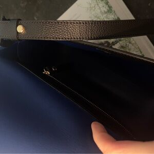 Elegant and timeless Longchamp Le Foulonné crossbody bag in pebbled black leather with a striking cobalt blue interior. Features gold hardware, adjustable strap, interior zip pocket, and magnetic flap closure. The structured silhouette makes it perfect for both day and evening wear. New condition — no signs of use. Measures 10 x 7 x 3. Price is firm. Unable to entertain low ball offers.