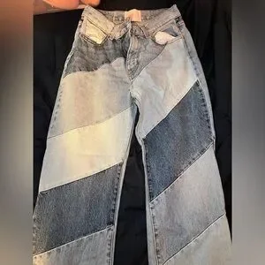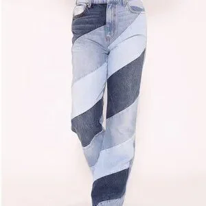 Revice 90's Baby Candy Shop Candy Stripe Denim Jeans Wide Leg High Waisted Fit. The 90's Baby / Candy Shop feature multi-wash panels that create a one-of-a-kind look. This style is a high-waisted and wide leg fit.