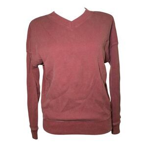 Madewell Women’s XS Orange Waffle Knit V-Neck Long Sleeve Thermal Top Cotton