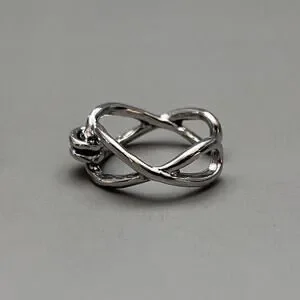 Unisex silver ring featuring a DNA strand design with an open adjustable band