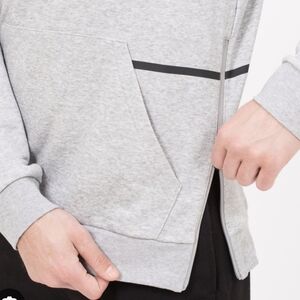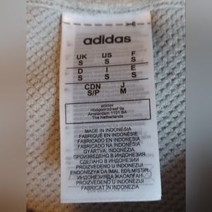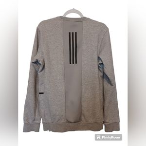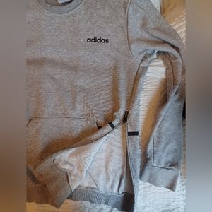 Adidas Sweatshirt with front pocket and side zipper and mess strip down the back.
