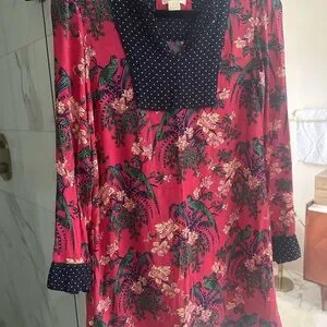 Chic floral dress with playful polka dots. Stylish and versatile.
