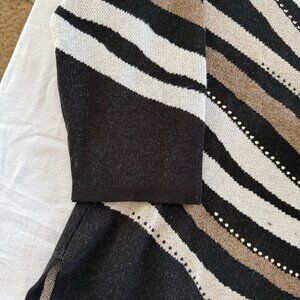 You will look Fierce and stay warm in this Alfred Dunner Jacquard Animal Zebra Print Lightly Beaded Jewel Neckline Sweater. Add a little wild to your sophisticated style! It's lavished in eye-catching stripes and understated metallic studs and will one of your gilt-y pleasures.