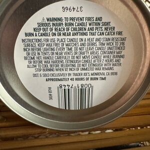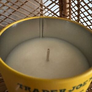 Trader Joe's corn scented candle with a sweet cornbread aroma. Soy wax blend with lead-free cotton wick.
