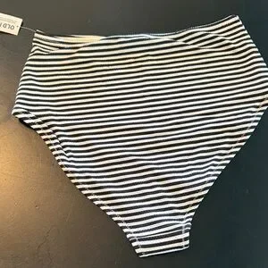 Brand New Stylish high-waisted bikini bottom with black and white stripes. Perfect for a chic beach look.