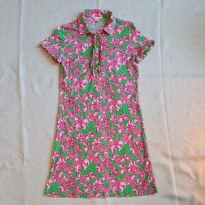 Lilly Pulitzer Pink and Green Butterfly Floral Polo Dress with Ruffles sz Small
