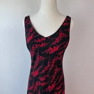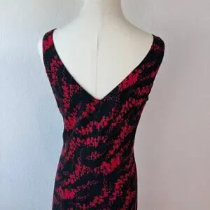 Vintage 90s Floral Sleeveless Cocktail Dress size 10 Black Red Whimsygoth Vneck
