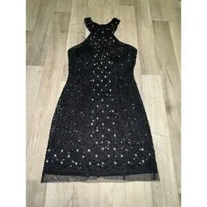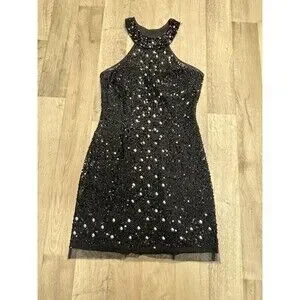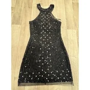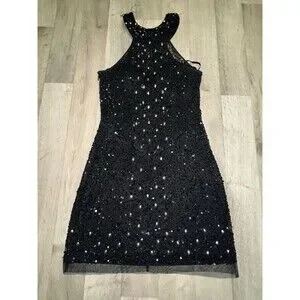 Mori Lee Glam Vintage Mini Halter Sequin Dress Beaded Silver Size 6