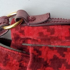 Juicy Couture Vintage Y2K Red Maroon Velvet Houndstooth Messenger Bag Purse