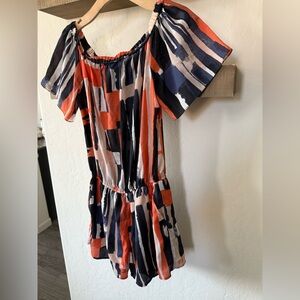 Elevenses|Anthropologie Off-Shoulder romper in multicolor Artsy print•••size 6