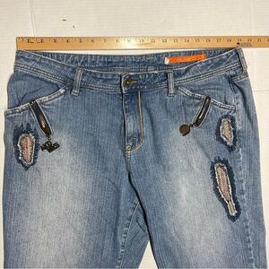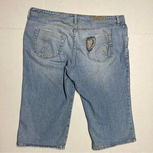 AKDMKS Knee length Jean Shorts Blue Embroidered Patches Urban Wear Mens Size 38