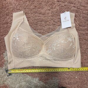 NWT Floral Lace Seamless Bra Womens Sz 2XL Soft Sexy Sheer Intimates Tan Beige