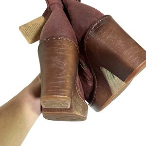 Born Hailey Burgundy Suede Leather Platform Bootie Size 6M New