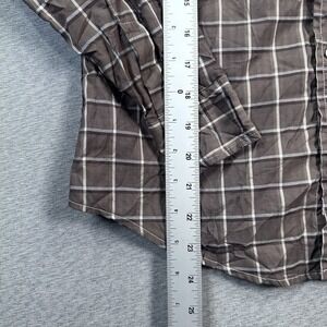 The Frank & Eileen Women's Small Brown Plaid Button Down Shirt with Pockets is a stylish and versatile addition to any wardrobe. Made from a comfortable down fabric, this long sleeve shirt features a classic button-up style with a flattering plaid pattern. The brown color adds a touch of sophistication, while the convenient pockets add functionality. Perfect for a casual day out or dressed up with a skirt for a more formal occasion, this shirt is sure to become a go-to piece for any fashion-forward woman.