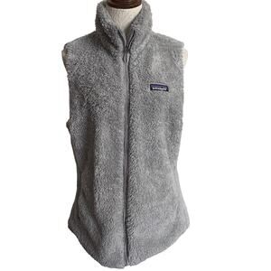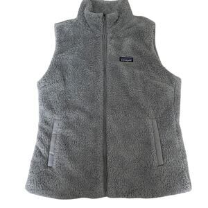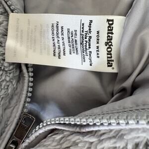 Patagonia women’s fleece vest in medium. Style STY25216, RN51884. Features a full front zip, soft sherpa-like texture, and zip pockets. Color is a neutral light gray with gray trim, perfect for layering. Shell and lining are 100% polyester. Flat lay measurements: chest approx. 20”, length approx. 25”. Excellent condition with no stains, holes, or piling. Cozy and warm—great for fall hikes, errands, or gifting season. Style keywords: Winter Core, Outdoor Cozy, Quiet Adventure, Patagonia Layering, Functional Minimalism.