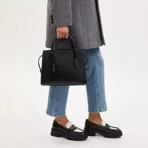 The Coach Andrea Carryall Bag features a spacious interior with multiple pockets and compartments to keep essentials organized and within reach.