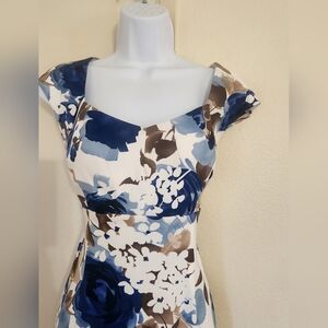 Connected Apparel Blue and Brown Floral Midi Dress Sz 12