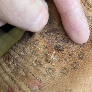 Bohemian tan leather boots with muted floral pattern. Soft leather with distressed heel and soles. Wore about 5 times...just didn't fit my feet well for some reason. They are beautiful and perfect to pair with dresses and cute sweaters for Fall. Besides on small area on top stitching where the stitch is loose, they are in amazing condition!!!! Paid $200 new...