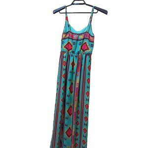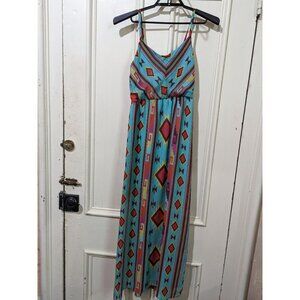 Sapphire Dollz Womens Aztec Print Spaghetti Strap Maxi Dress Blue Multicolor Bol
