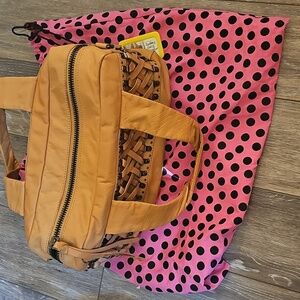 Romygold Woven Leather/Brackets Women's Spacious Travel Bag, Buttery Cream, New