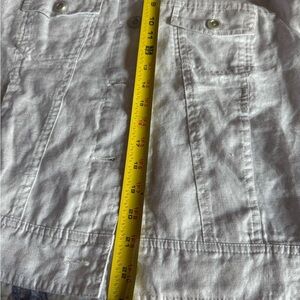 Stylish and versatile jean jacket. Shimmering silver finish. Perfect for layering. See pictures for measurements. Jacket is a little oversized. It’s an extra small but as a medium I can fit this jacket