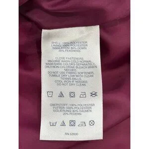 This quilted puffer vest offers exceptional warmth and style with its purple exterior and gray collar. Ideal layering piece for cooler weather.
