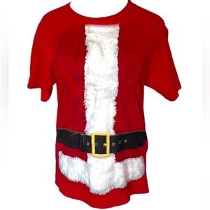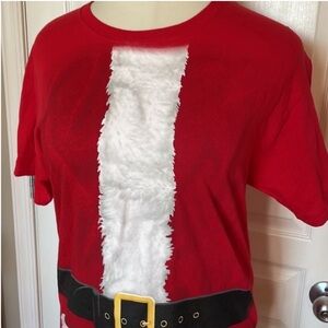 Dec.25th Christmas holiday Xmas red Santa Claus outfit tee shirt to wear for fun or part of a costume. Santa’s outfit shirt has fur and a belt. Pullover crewneck t-shirt. Santa coat top. Christmas holiday party graphic t shirt.