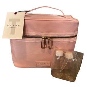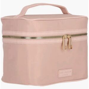 TED BAKER LONDON Light Pink TRAIN CASE MAKEUP Toiletry Cosmetic BAG GOLD Zipper