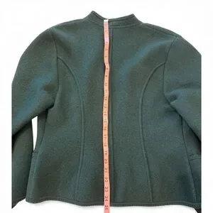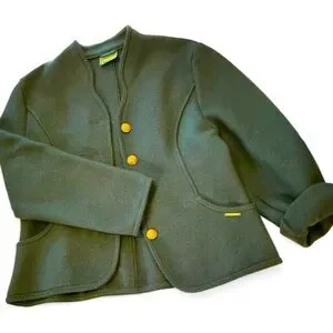 Geiger of Austria beautiful boiled wool jacket. Thick and soft, this is perfect for the holiday season. Embroidered edges, quality metal buttons, pockets. Excellent condition. Please note that one button has been previously reattached (please see photos). Cover photo depicts jacket paired with a Patagonia button-down, style #54962SP16–also available in my closet!