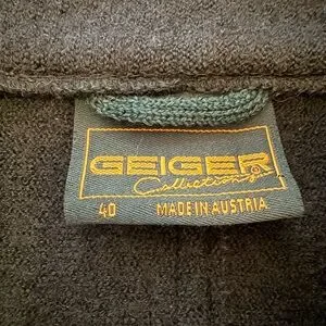 According to the Vintage Fashion Guild, “Geiger Tyrol is a traditional Austrian clothing maker, started in 1906 by Barbara Geiger. She adapted traditional Tyrolean knit patterns and, using wool acquired locally from farmers, started a cottage industry.