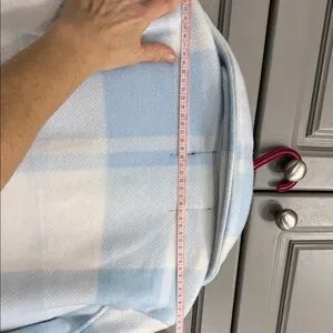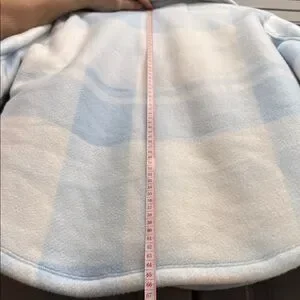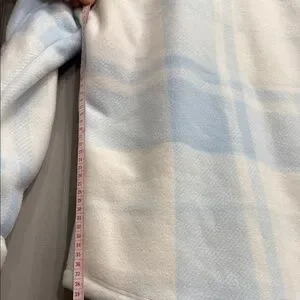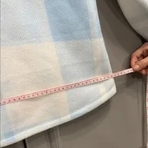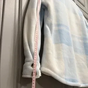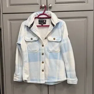 Cozy meets stylish! This soft sherpa-lined plaid shacket is perfect for chilly days. Light blue & white check pattern with snap button front and chest pockets. Great condition — clean, no flaws noted!